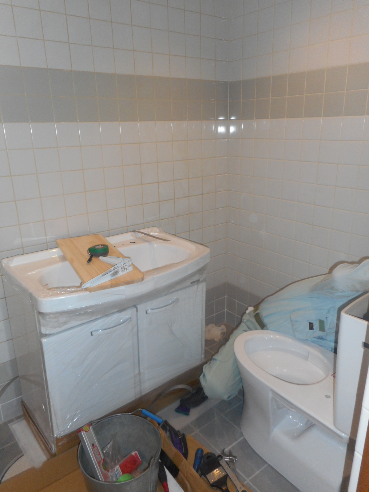 | 便器等のトイレ備品を、組付けます!! | 新規の洗面台も、組付けます!! |
