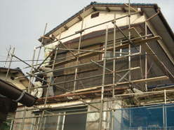 足場組みの完了(これで安全に作業が出来ます)!!