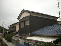 黒線で囲った部分は、施主さんの負担で追加工事として外壁の張替え、庇の軒天の