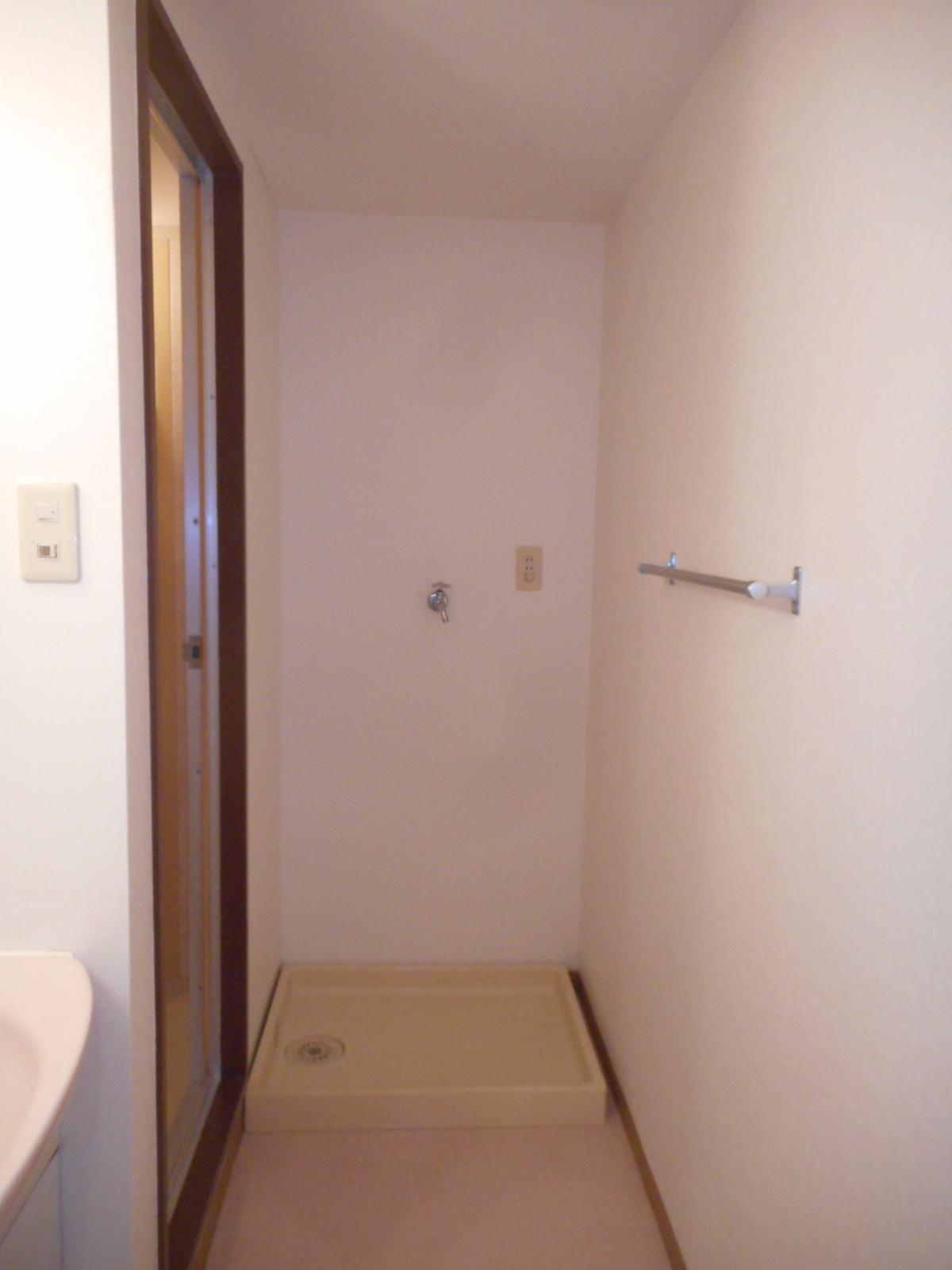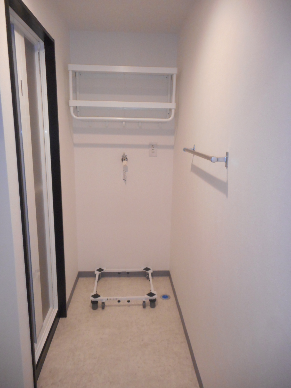 洗濯機置き場も、上に施主さんが用意した棚を取付け