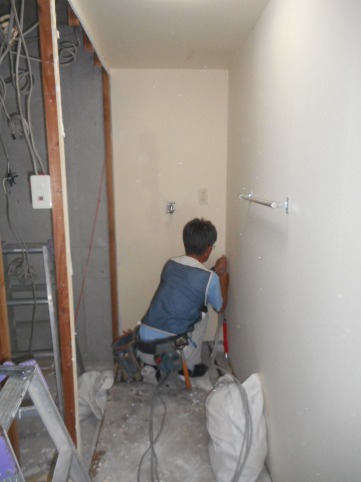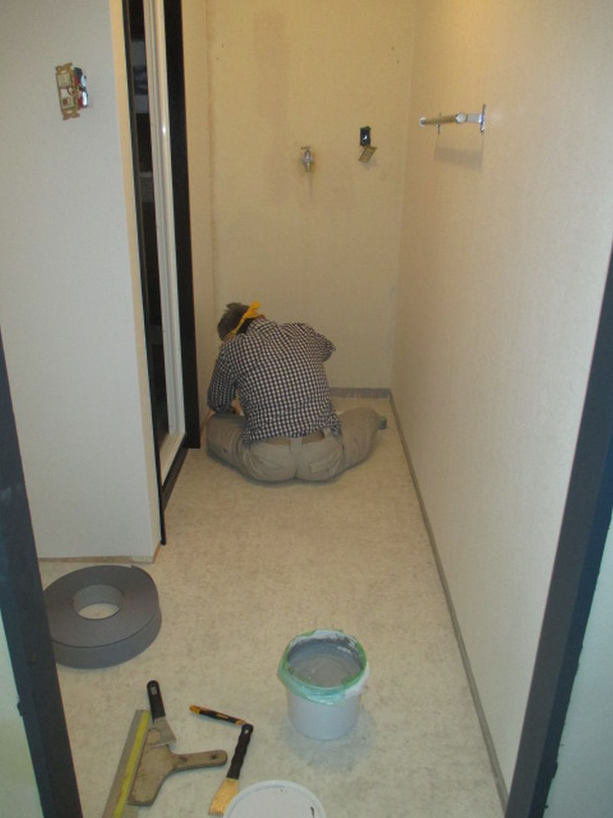 ・化粧台廻りと奥の洗濯機置き場を含め、全面内装をやり替えます。
