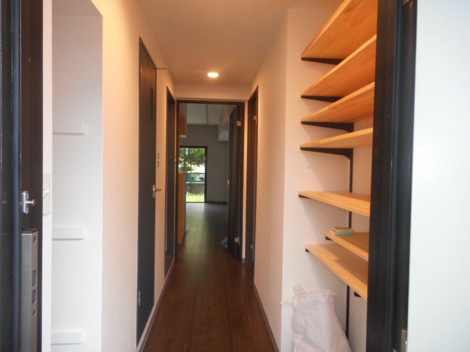 ・右の収納棚(下駄箱)を撤去後オープンにし、造り付けの棚を造ります。