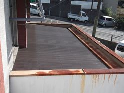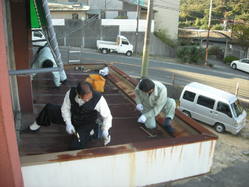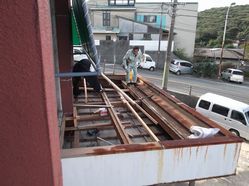 玄関ポーチの屋根の波トタンがかなり錆、穴もいたるところに開いている状態で