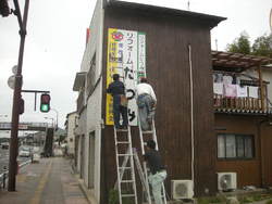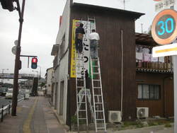 筋川町の交差点の私の娘の所に横1.2m縦3.0mの看板を建てました。