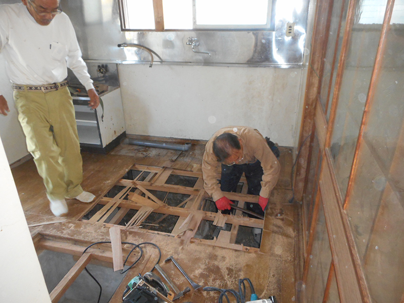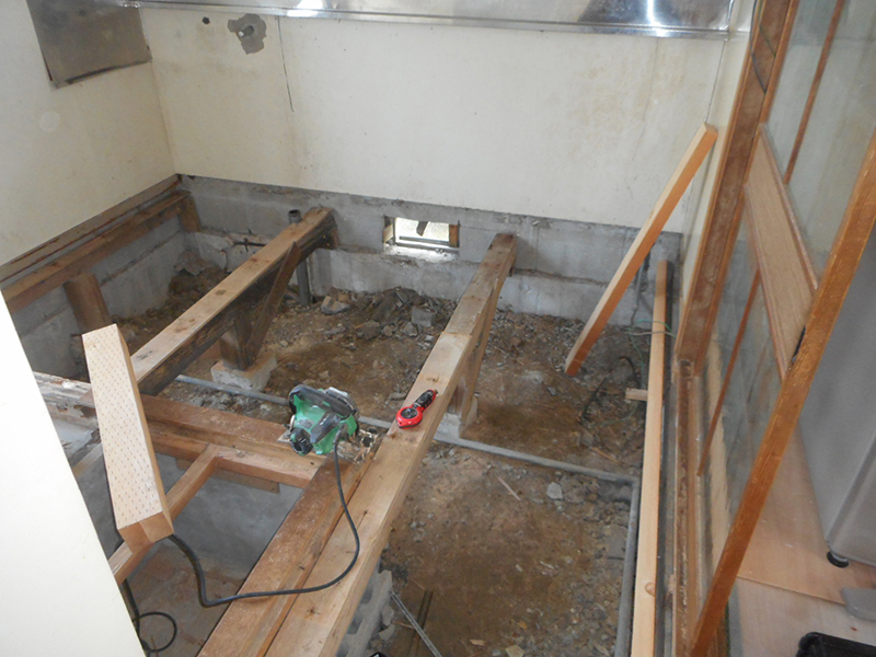 | 床板を解体します!! | 根太まで、すべて解体撤去しました!! |