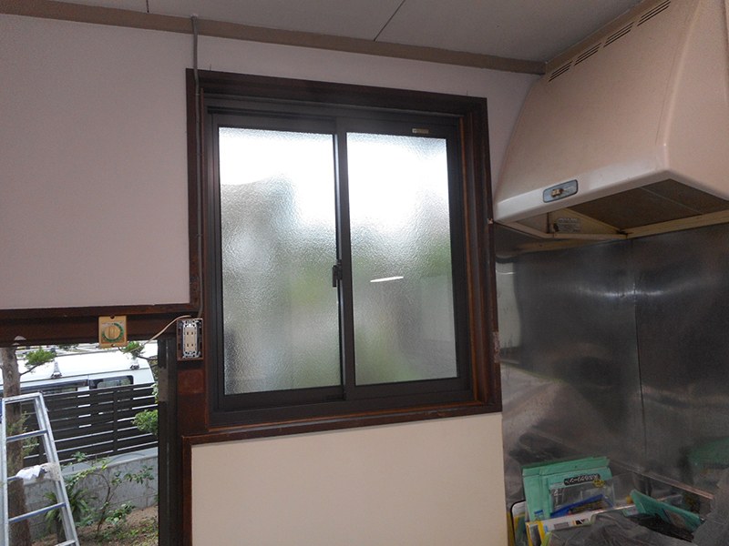 | 既存の木製の窓を、撤去します!! | 新規のアルミサッシを、施工しました!! |