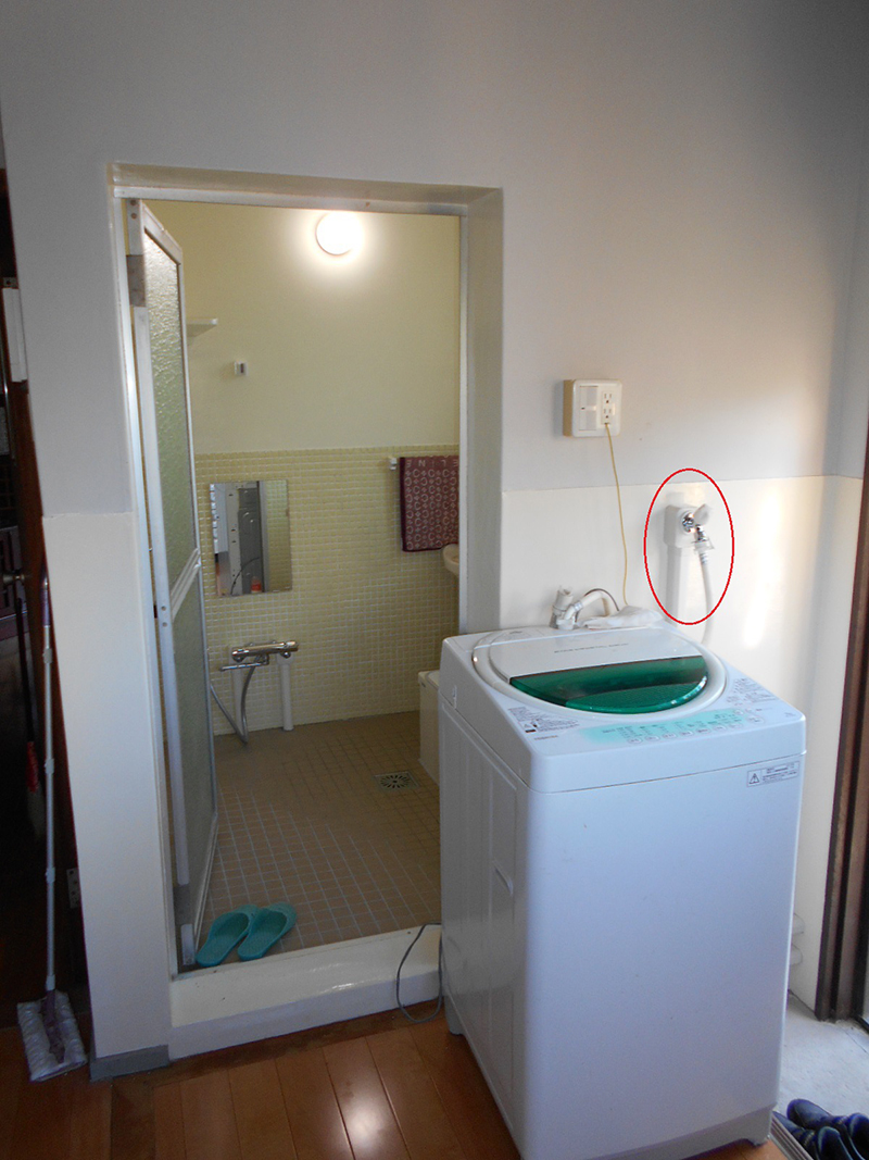 | 浴室方向を見る!! (○洗濯機用水栓を新規に取付けました) |
