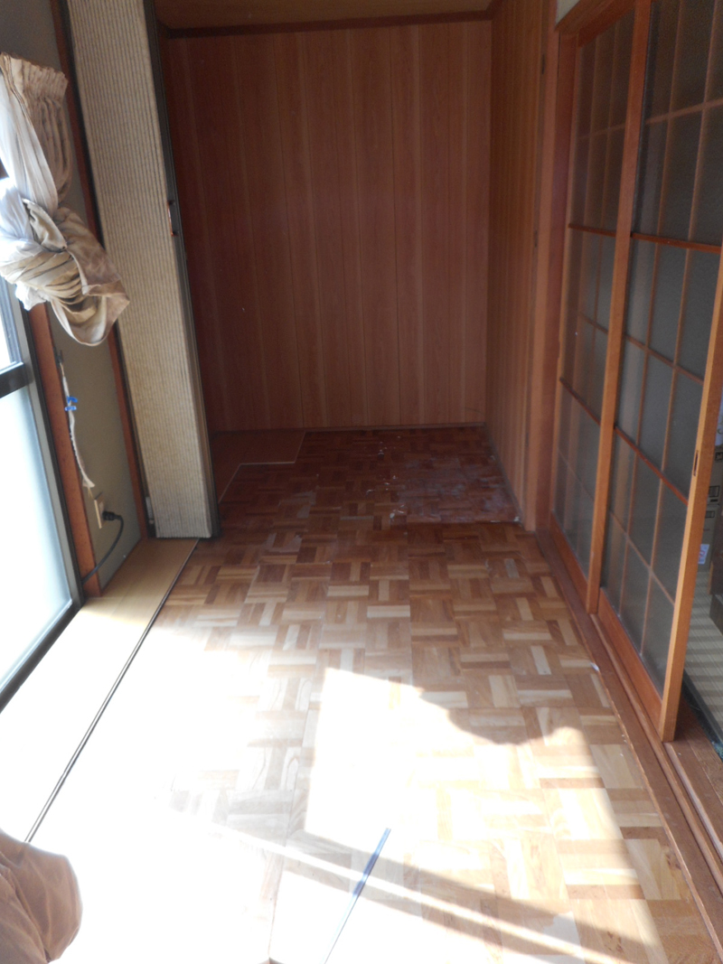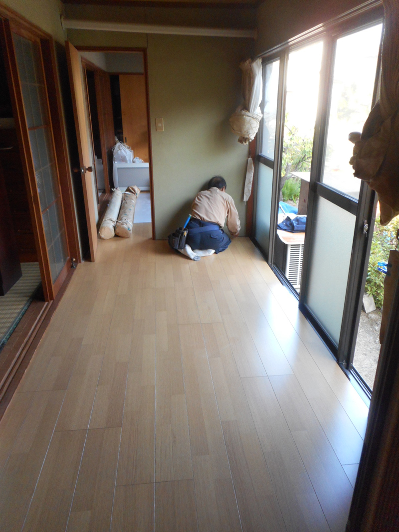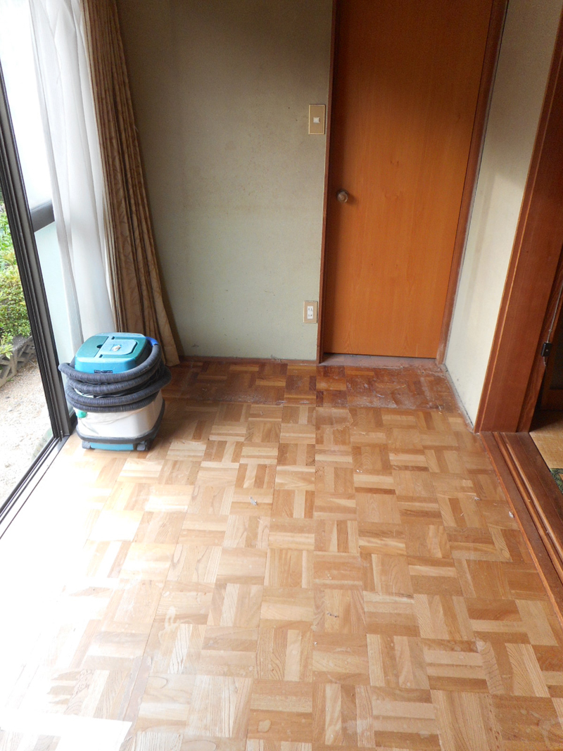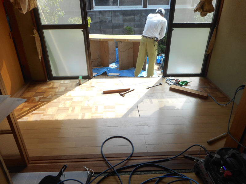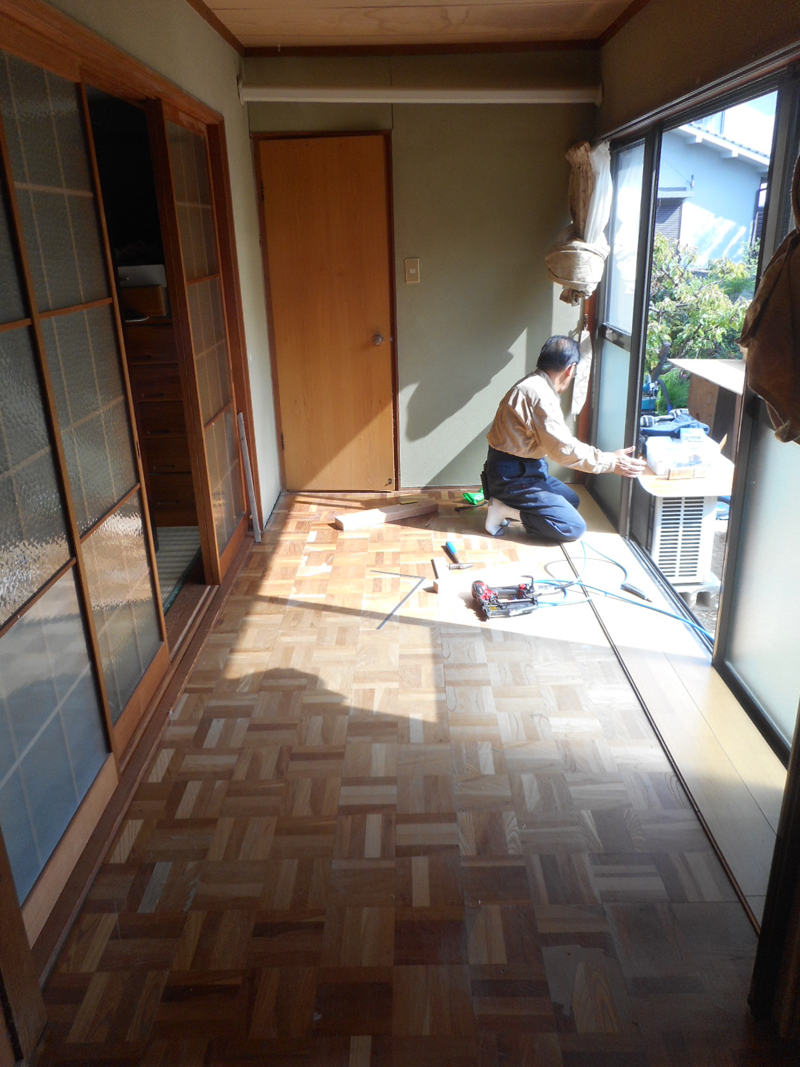 2箇所ある広縁の床がブカブカするので、既存上部より新規のフロア材を施工します。
