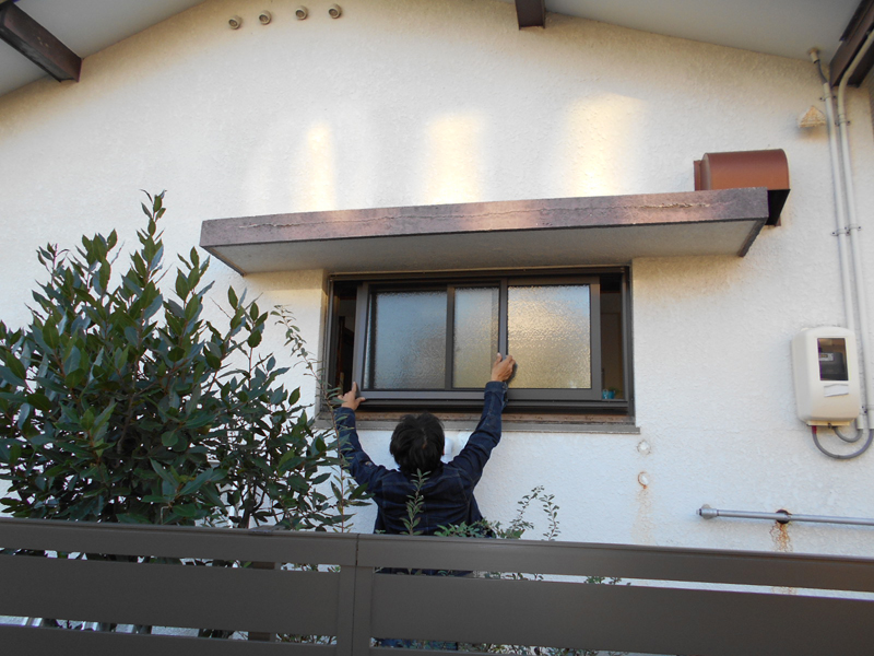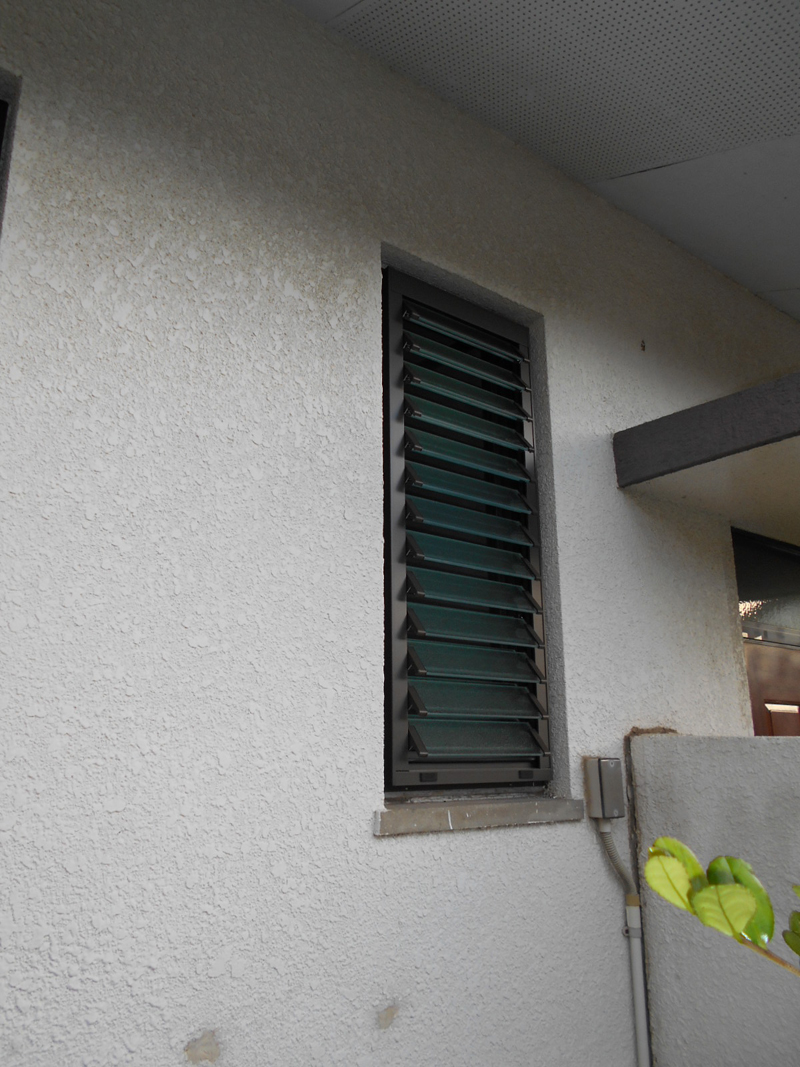 木製の窓から、アルミ製のルーバーサッシに交換しました!! ルーバーサッシを、外から見る!!