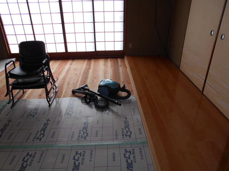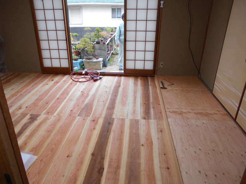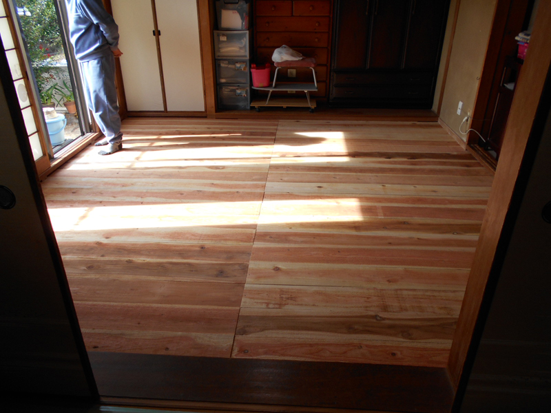 ・残り8畳は、畳下の合板の状態が悪いのので、これを杉板の座板に交換し畳も新床にします。