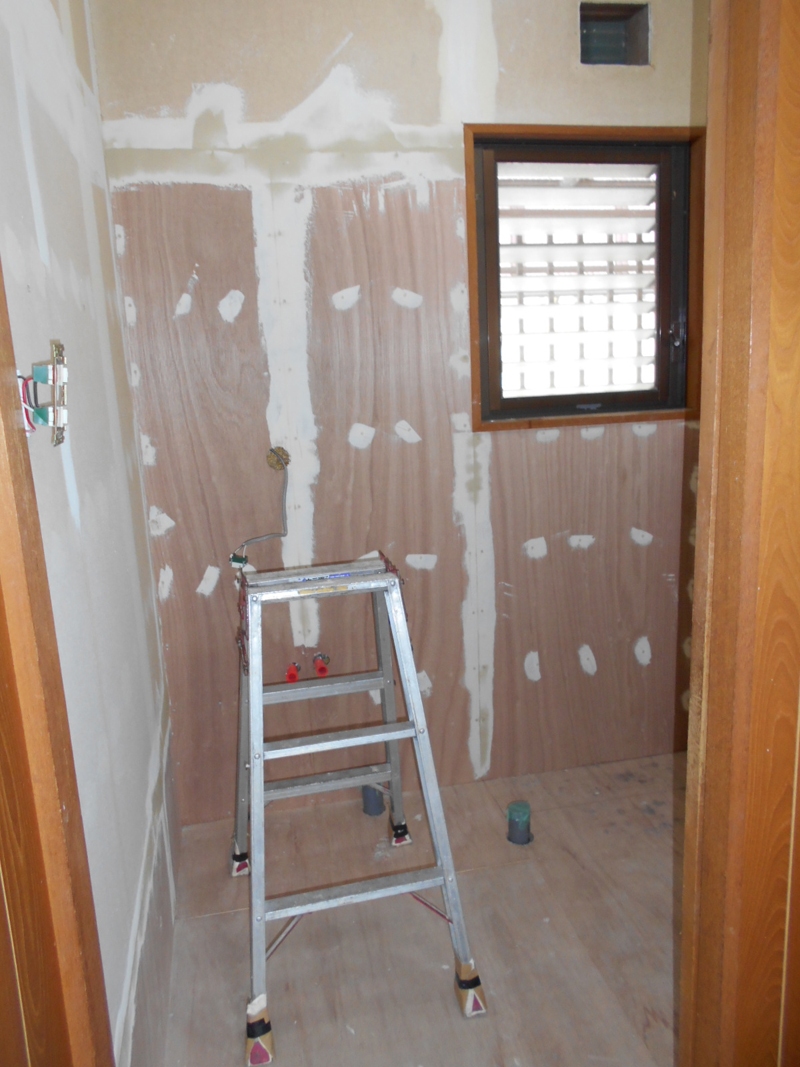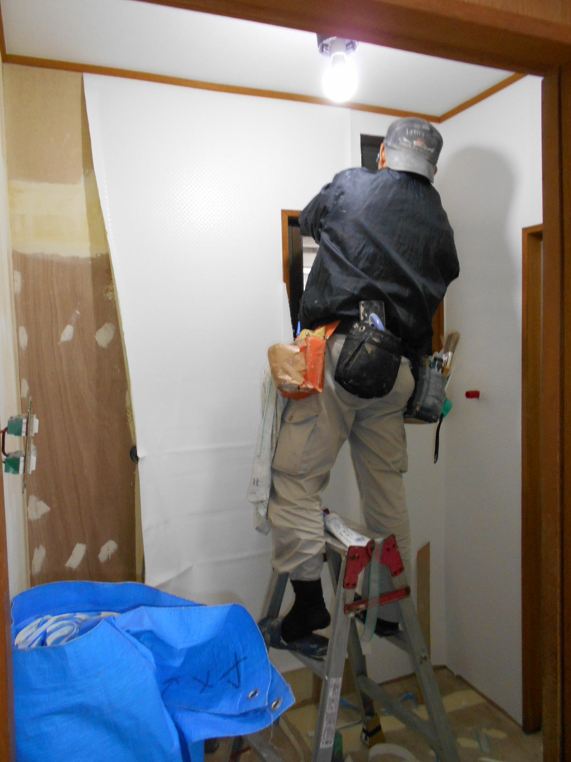 | 下地づくりが、完了しました!! | クロス屋さんが、内装工事をします!! |