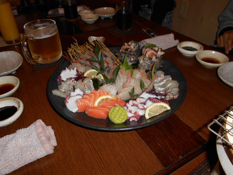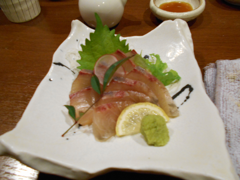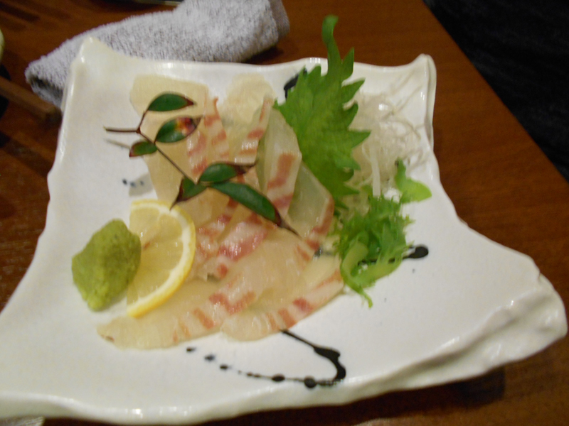 最初に、「お通し」が来ました!! 事前に頼んでいた、「刺身の盛り合わせ」です!!