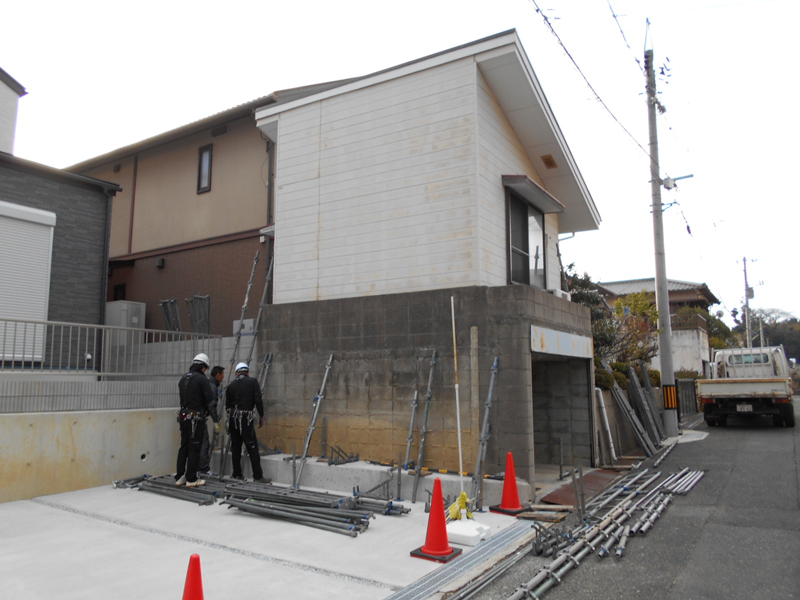 | 足場を組みます!! | 足場組みが完了しました!! |