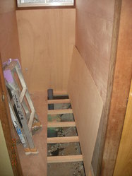 床も排便管を移設後、下地の骨組みをしコンパネを張ります!!