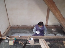 階段下の押入れの座がシロアリに食われ、抜け落ちそうなので解体し張り替えます!!