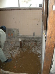 壁廻りのタイル、モルタル壁及び天井を解体,撤去後浴槽等を撤去します!!