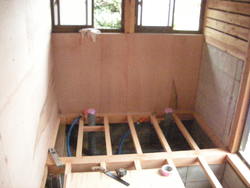 床廻りはシロアリに食われていた大引きを入れ替え、タル木も新しい物を施工しました!!