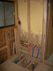 *洗面所の改装工事は、施主さんが洗面ボールや混合栓等の備品を用意するので、それを