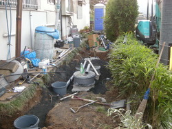 今回のお宅は家の間取り上、排水管の布設距離が長く、又重機が入らないため手作業が多くなり