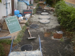 各水廻り(キッチン、浴室、洗面所、トイレ)の排水管を浄化槽に引き込み、接続する