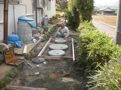 にも下水道が引かれる予定がないため、外に合併処理浄化槽を埋設,設置し、トイレ室内も