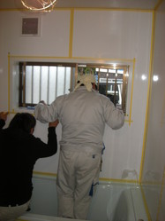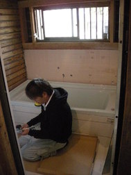 コーキングの施工も終わり、システムバスの組み立ての終了です!!