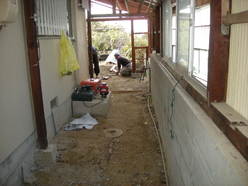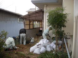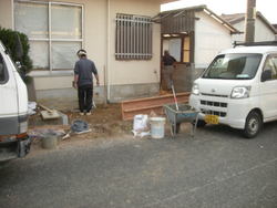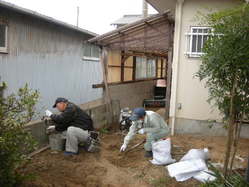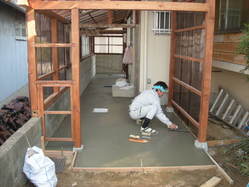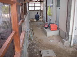 の自転車を置ける様にすることと、現在の土間部分は土のままの状態なため、この部分を