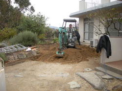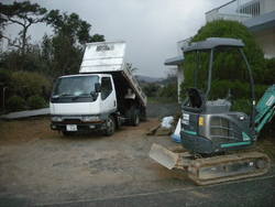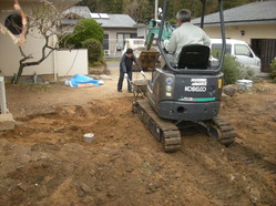 粒調を敷くために、既存の土をユンボを使って10㎝位すくい取りって行きます!!