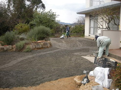 この粒調を10㎝位敷いて、しっかり天圧して置けば雨が降る度に締まって行き、数か月すると