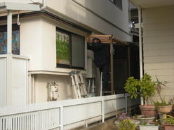 *少しでも塩害から給湯器を守るために屋根と壁の上部を囲う工事を行います。