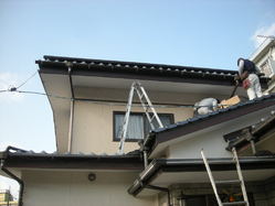 屋根の施工と壁の上部を囲い、雨樋を取付けて完成です!!