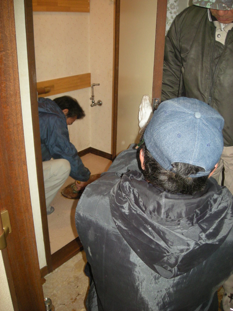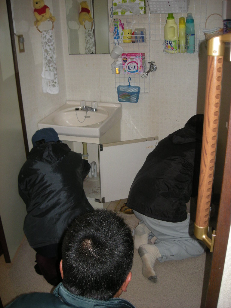 朝1番は当社の従業員は総動員で現場に行き、化粧台や洗濯機の撤去から始める!!