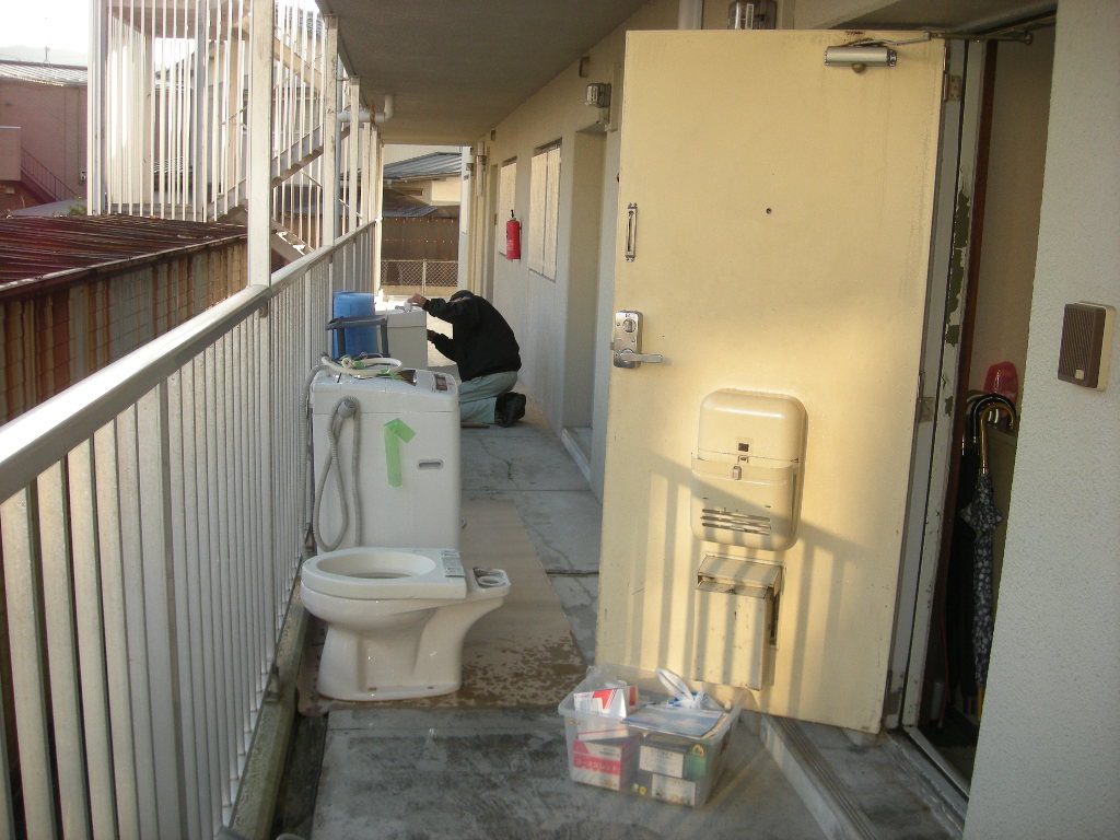 クロス屋さんが終わると同時に又設備屋さんに来てもらい、トイレの便器を元に戻す!!