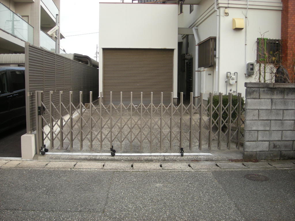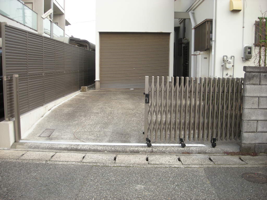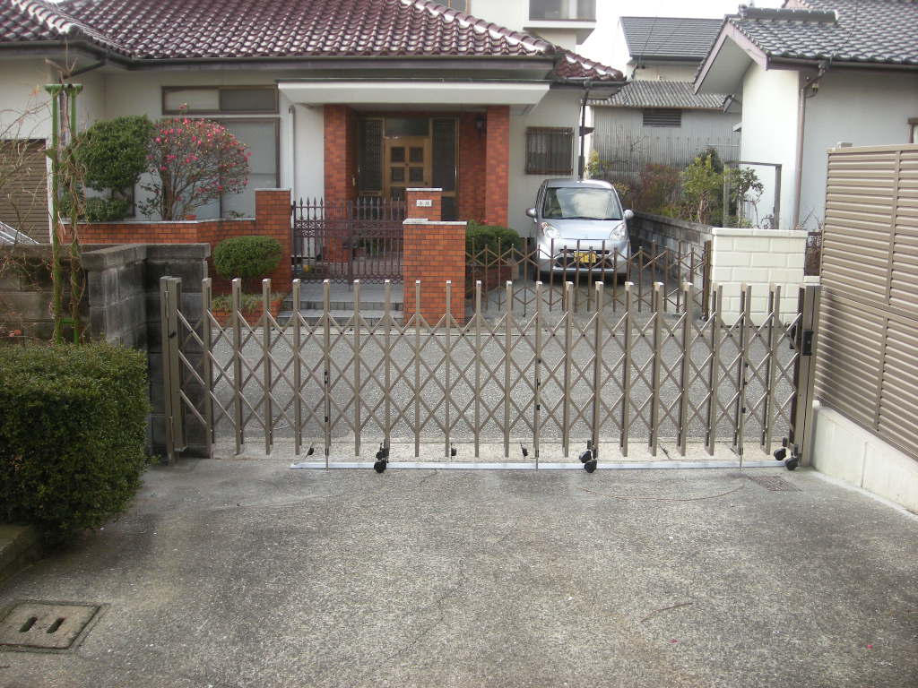 今回は施主さんの要望で強風に強い丈夫でグレードの高い収縮門扉を施工しました。