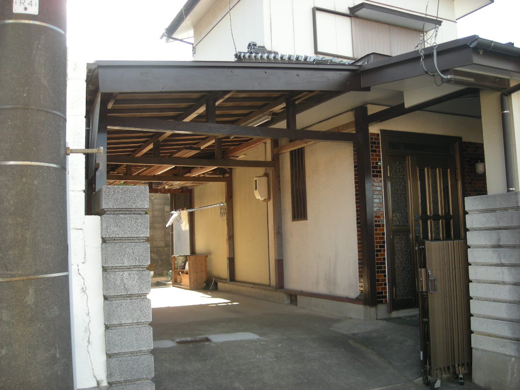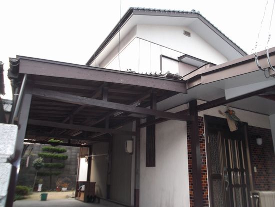 今の車庫の屋根の出が短いために、雨が降ると玄関ポーチの方まで雨が吹き込む