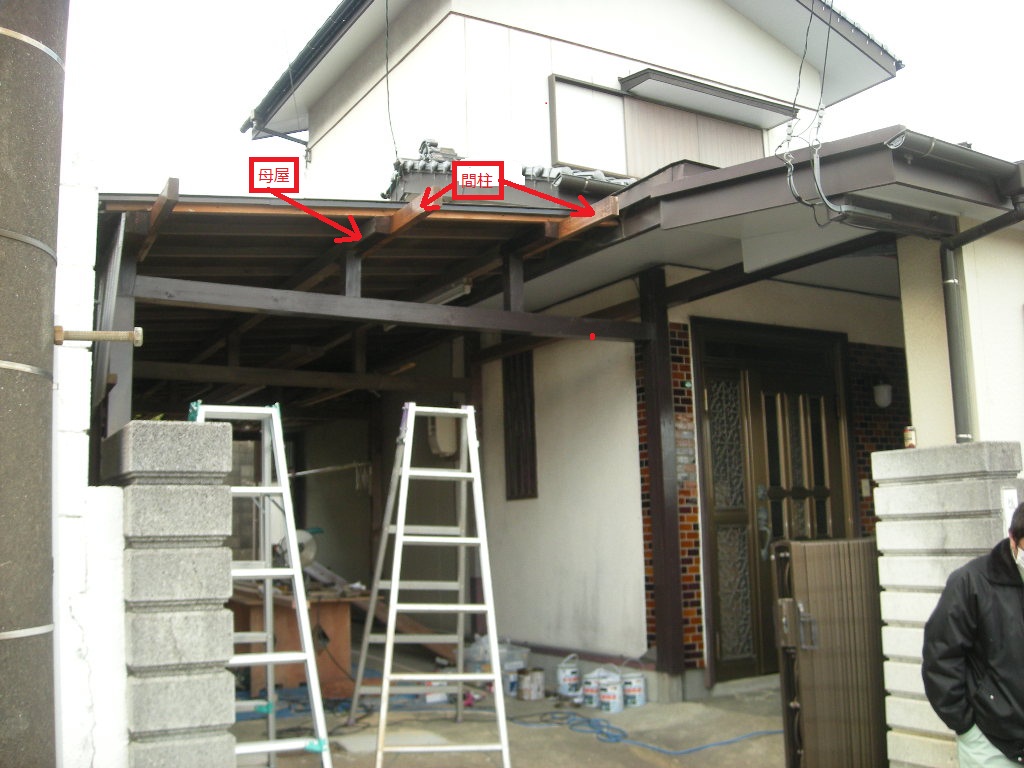 既存の屋根の母屋に間柱を抱かせ延長する!!