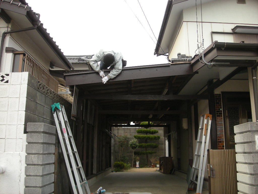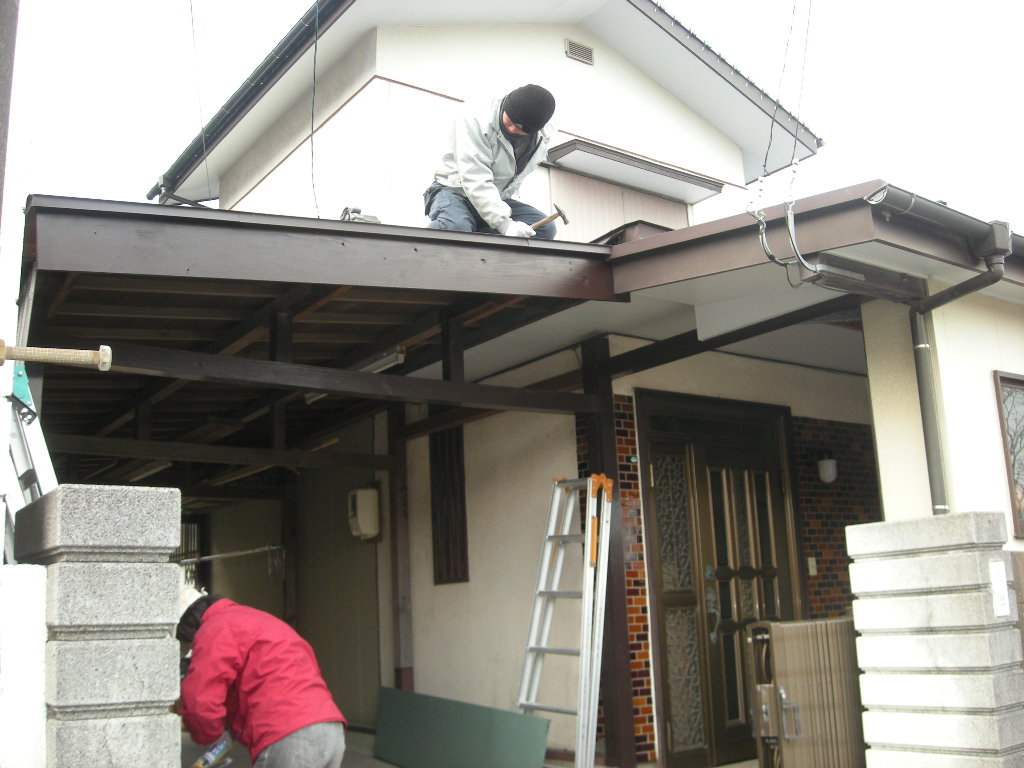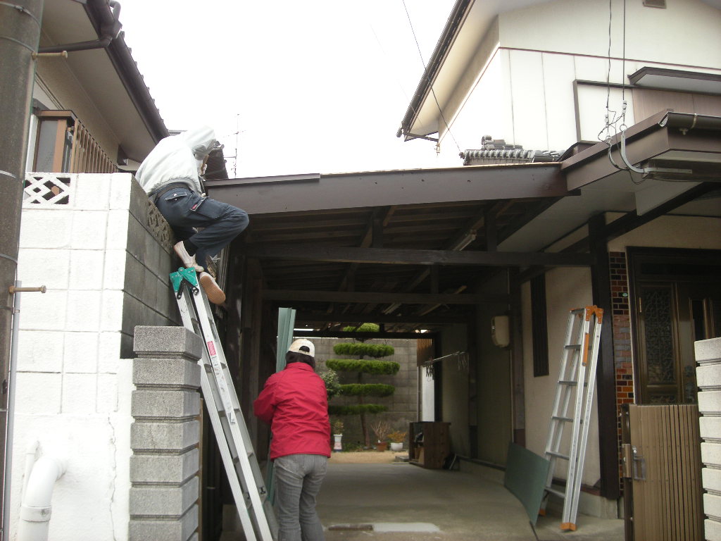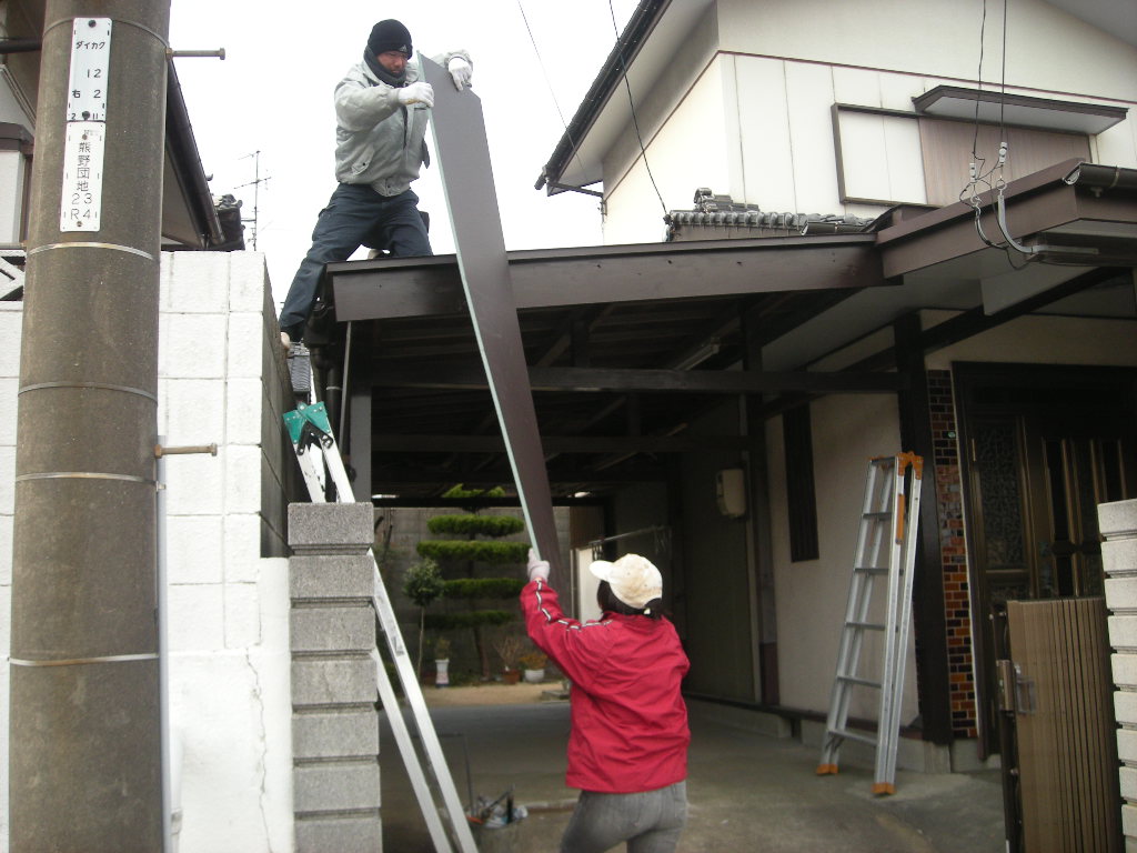 その1つで、今回は25日、26日に大学町で行った車庫の屋根改修工事の模様を紹介します。