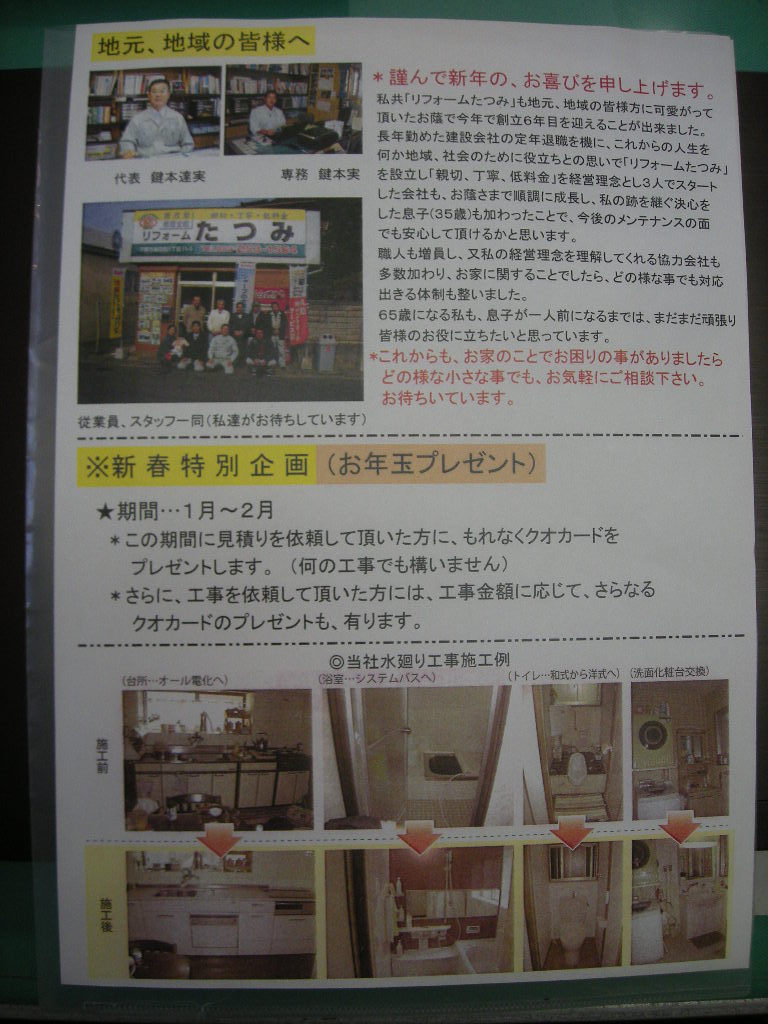 すでに、このチラシを手にした、お客さんから3件の工事の依頼がありました。