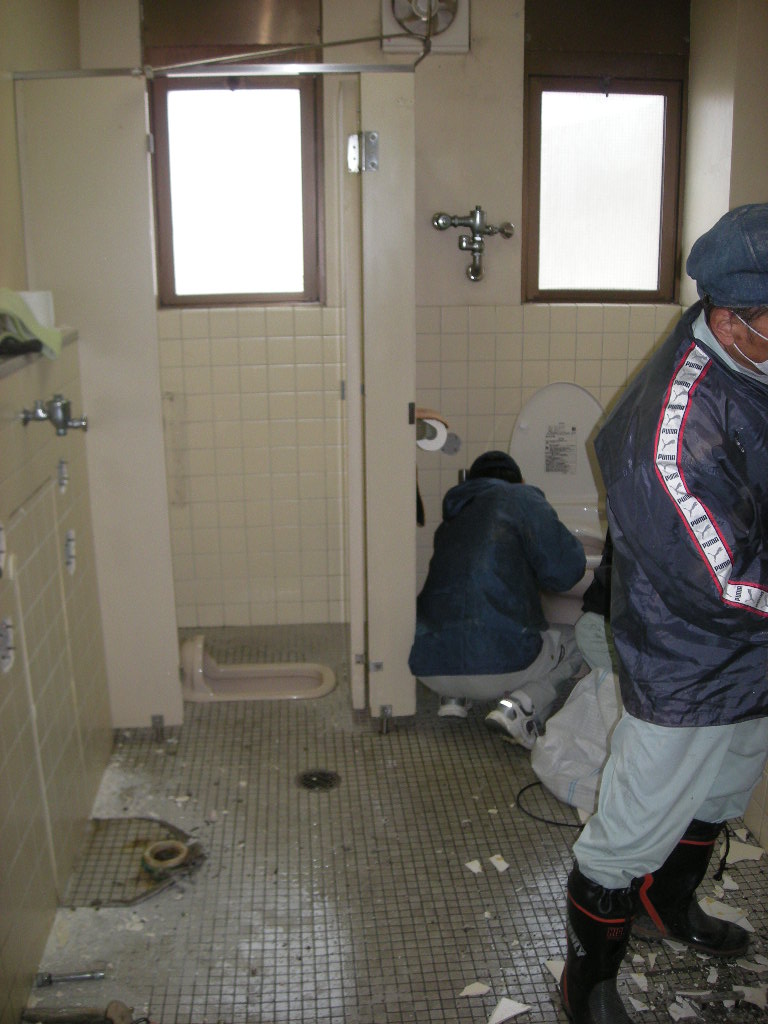 9日の午後からスタートした某病院のトイレの改修工事も病院が休みの10日、11日の
