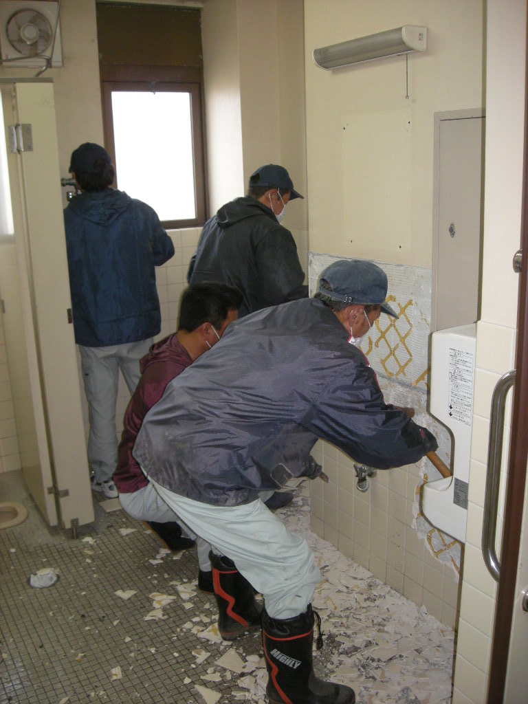 壁のタイルを解体、撤去します!!