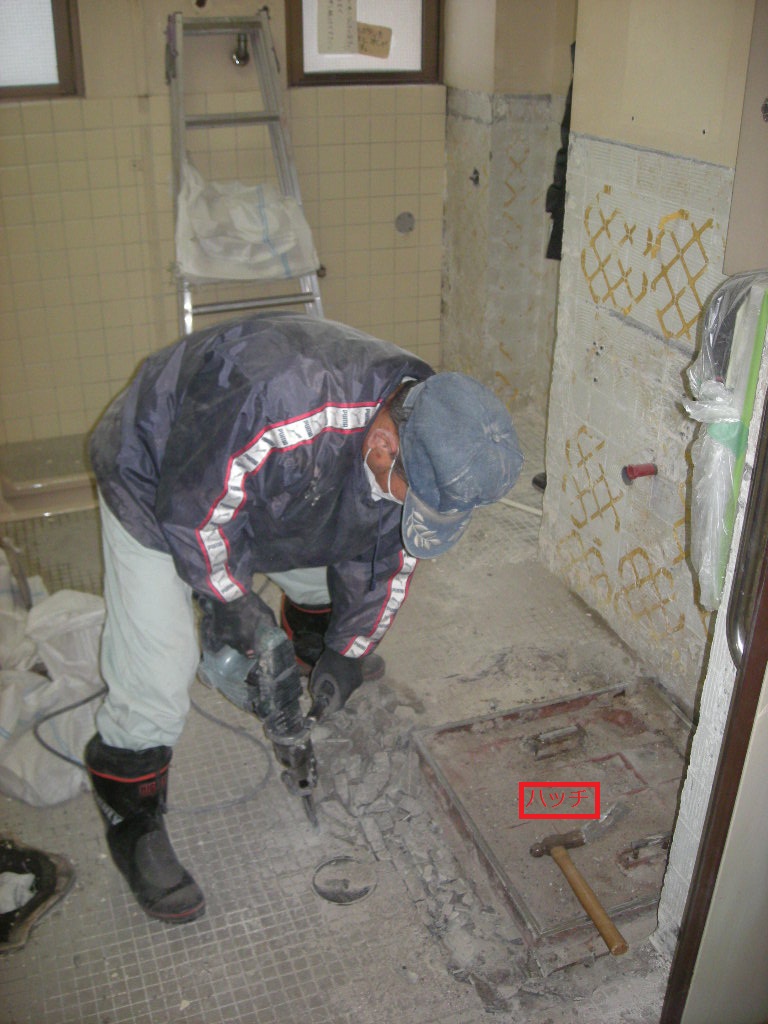 地下にある給排水管の様子が判ったので、新たに設置する便器等の給排水管を通すための穴明け位置を念入りに打合せする!!