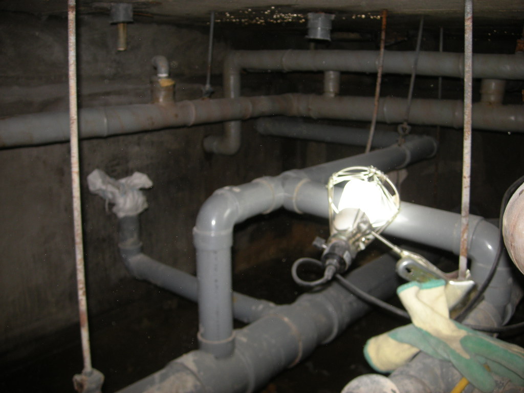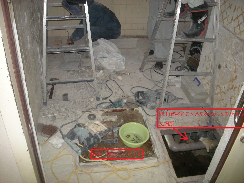 工事前に確認できなかった地下配管室に入って見る