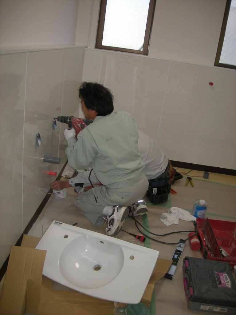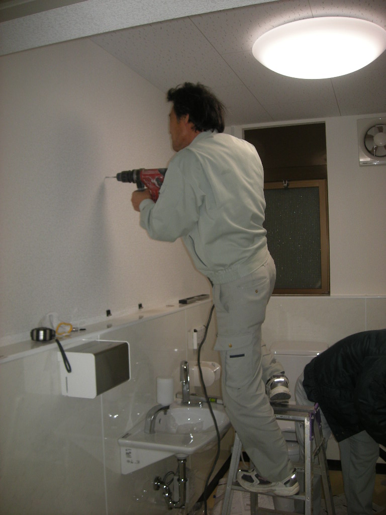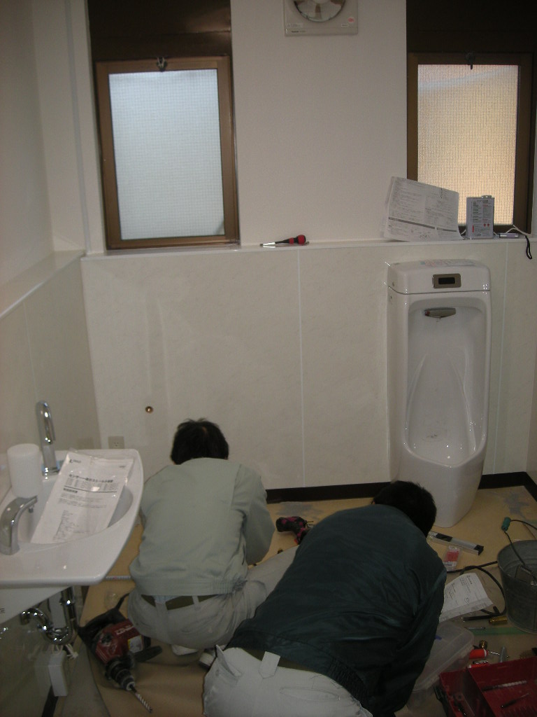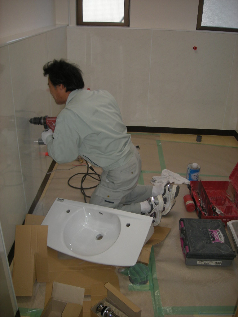 9日からスタートした綾羅木、某病院のトイレの改修工事も順調に工事の方は進んで