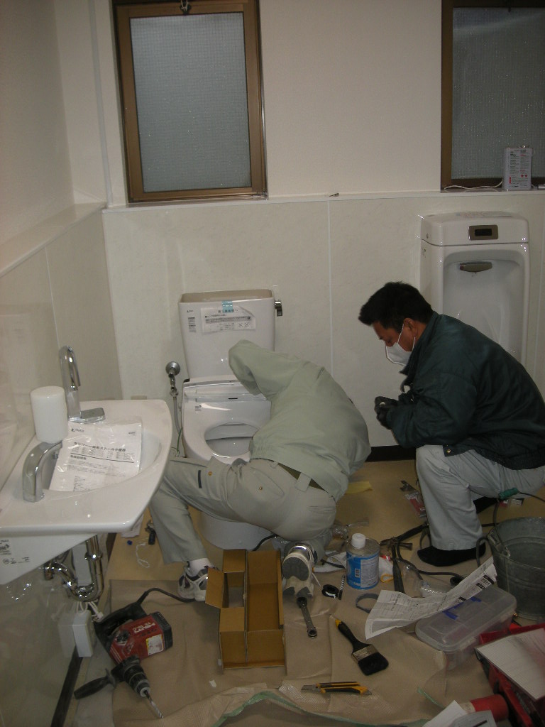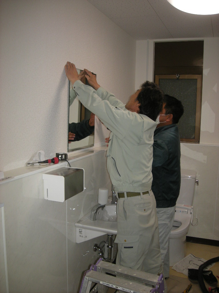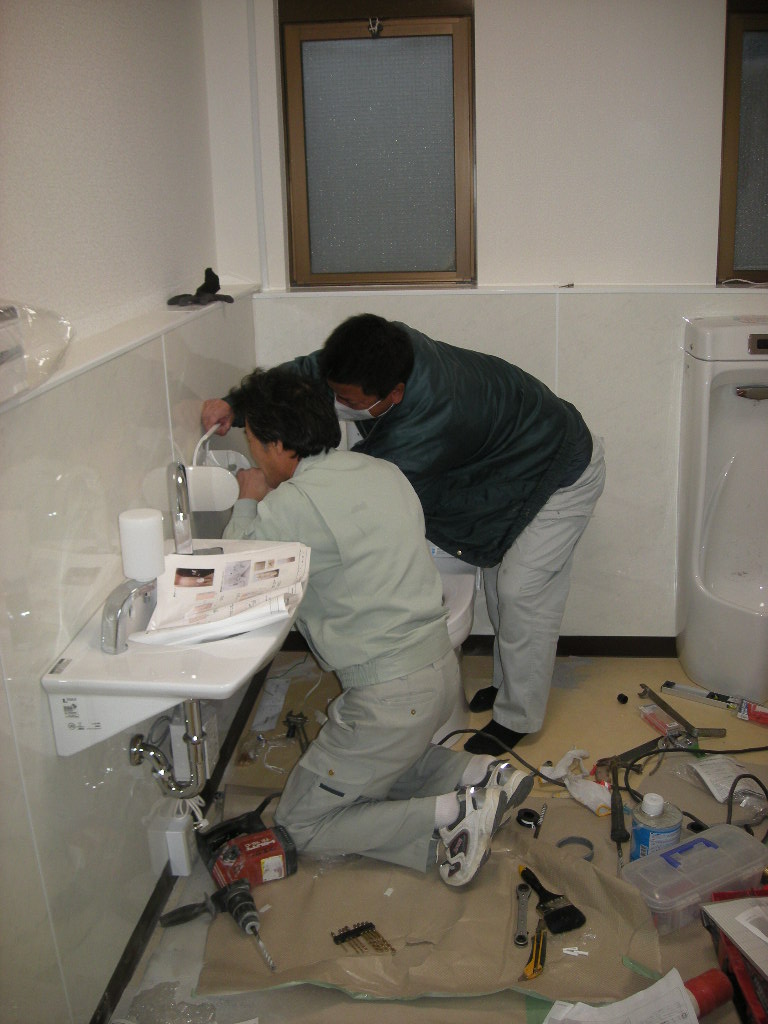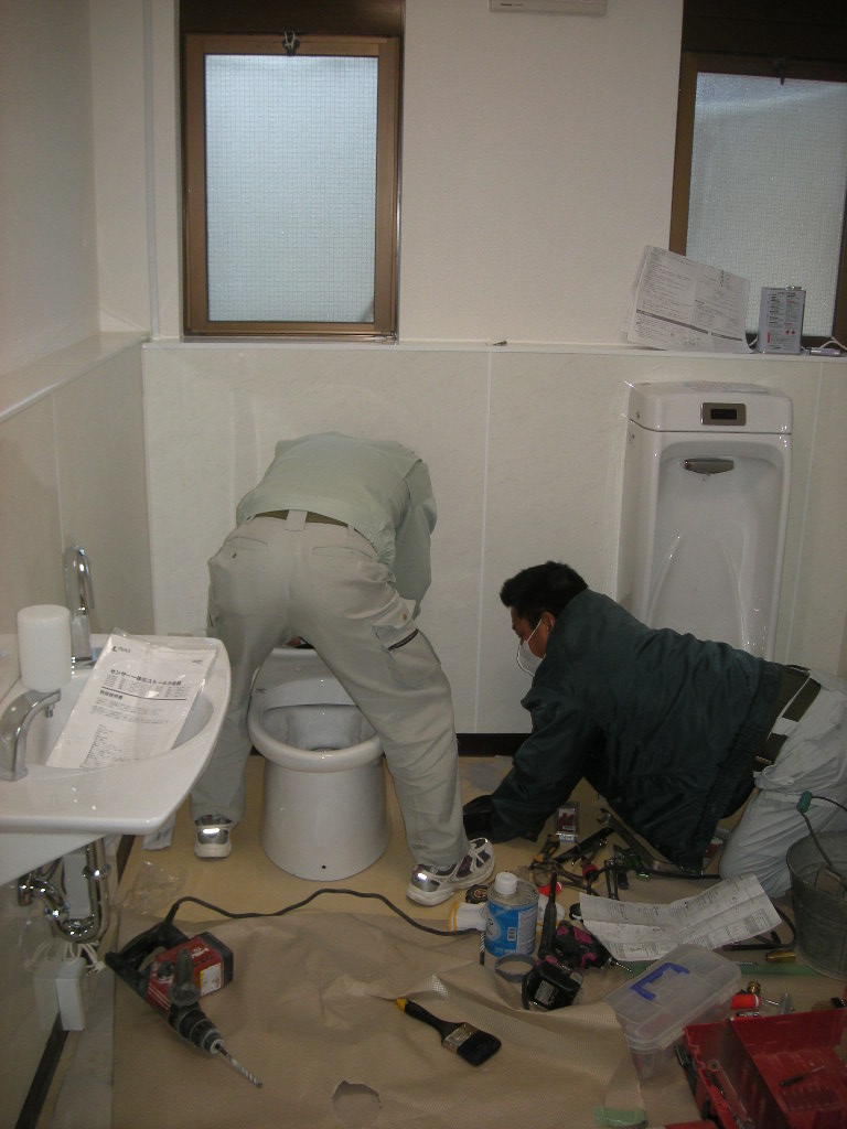 9日からスタートした綾羅木、某病院のトイレの改修工事も順調に工事の方は進んで