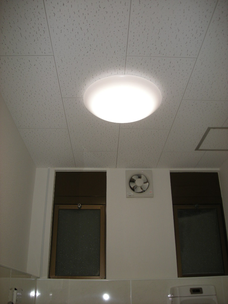 ⑫、天井には新しいLED照明器具を、正面上部壁にも新たな換気扇を取付けました!!