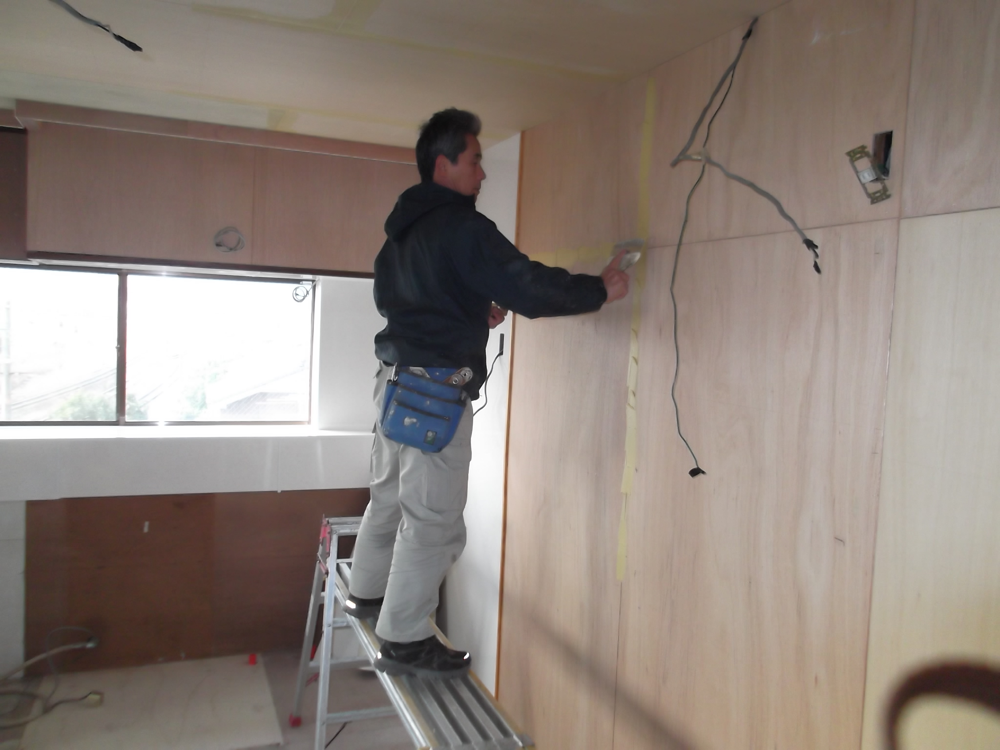 つづいて、キッチン廻りにキッチンパネルを施工して行きます!!