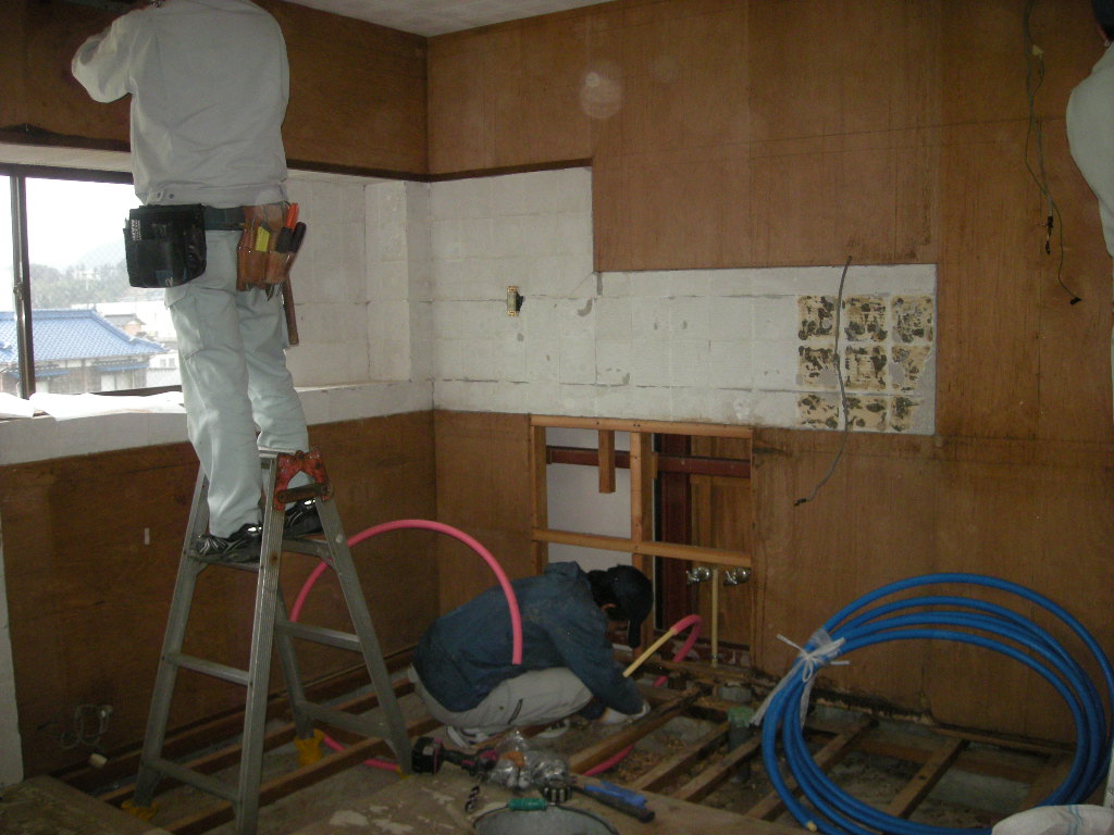 電気屋さんもこの時点で換気扇を取付けるための下準備や各配線工事を行います!!