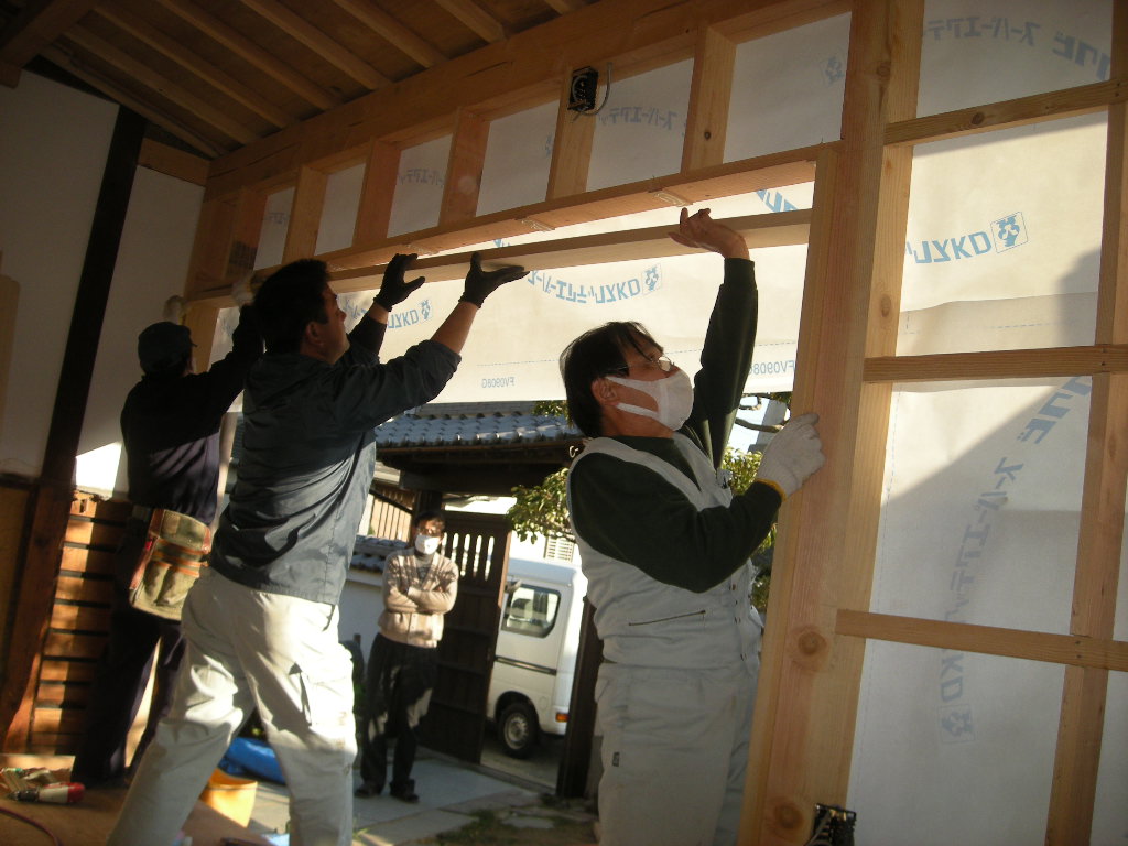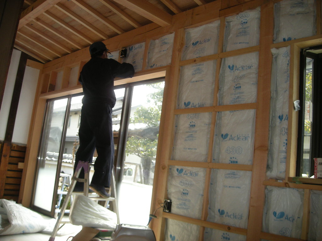 増築した広縁の壁廻りにも断熱材を施工して行きます!!