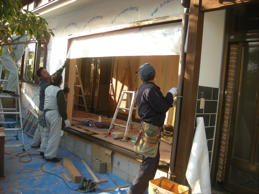 広縁に新規に出窓と一般のサッシを1組づつ取付けました!!
