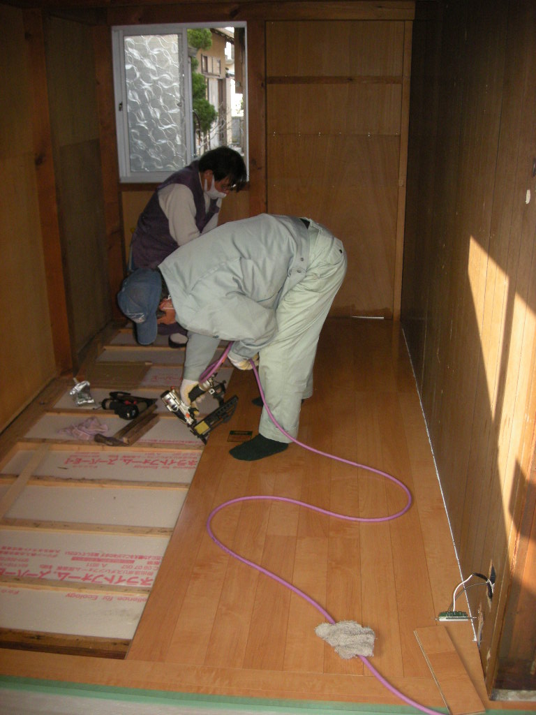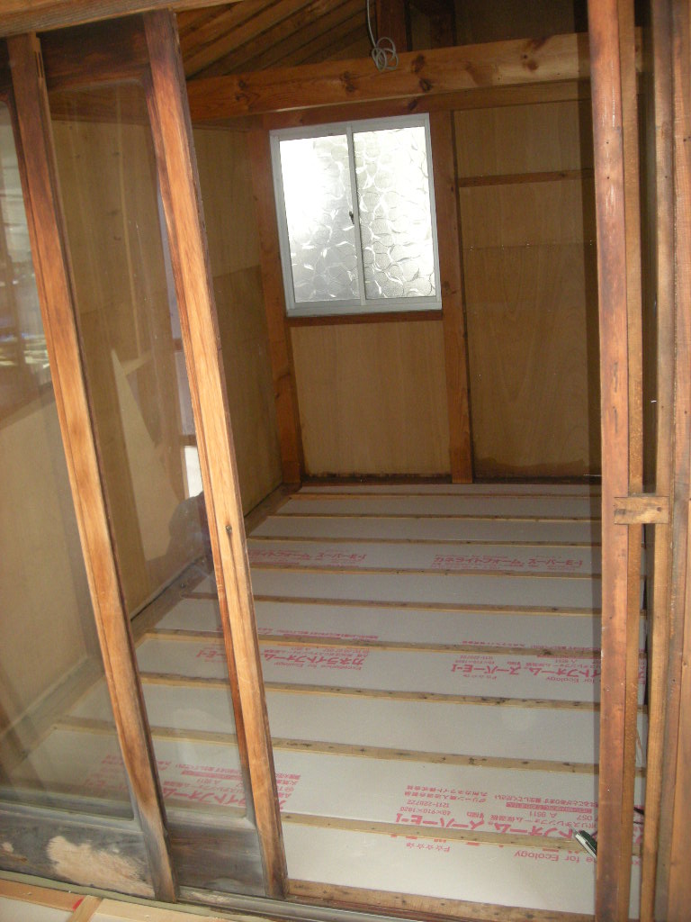 納戸の床の根太の間に断熱材を入れます!!